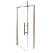 This PROSAUNAS sauna door combines precision engineering with refined aesthetics for residential and commercial installations. The frameless 8mm tempered glass design delivers a modern, unobstructed view while maintaining structural integrity in high-heat environments. Pre-hung construction streamlines installation, and the dual-handle systemāstainless steel exterior paired with wood interiorābalances durability with thermal comfort. Premium wood jambs, aluminum hinges, and vertical pull hardware create a cohesive, professional appearance that elevates any sauna space. Designed for those who demand both functionality and visual appeal.